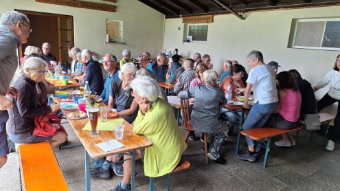 Am 4.9.25 trafen sich 34 Wanderfreunde zur 100. Jungseniorenwanderung beim Wendlinger Albvereinsheim. Trotz Regen wurde eine kleine Runde durch den Wendlinger Wald gewandert. Bei einem kaltem Buffett, das von den Wanderfreunden zusammengestellt wurde, saß man bis in die Abendstunden bei dem einen oder anderen Getränk in der Vorhalle des AV Heimes noch gemütlich zusammen.
