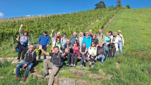 Am Donnerstag, den 7.8.25 trafen sich 23 Wanderfreunde am Wendlinger Bahnhof, um mit der S-Bahn und Bus von Wendlingen nach Weilheim/Teck zu fahren. Zunächst ging es über die Weilheimer Weinsteige in etwa einer Stunde Wanderzeit auf die Limburg. Nachdem die herrliche Aussicht genossen wurde, erfolgte anschließend auf der Südseite in den Weinbergen eine ca. 2-stündige Weinprobe. Hier wurde viel Interessantes über den Weinanbau auf der Limburg, in Neuffen und darüber hinaus erfahren. Nach der Verkostung verschiedener Weine trat die Jungseniorenwandergruppe des Schwäbischen Albvereins der Ortsgruppe Wendlingen in fröhlicher Runde kurz nach 18 Uhr wieder die Rückfahrt mit Bus und Bahn nach Wendlingen an.