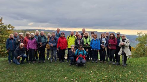 Am 18.9.25 trafen sich bei herrlichem Spätsommerwetter 33 Wanderfreunde zu einer knapp 12 km langen Rundwanderung, die am Reußensteinparkplatz begann und durch das Hasental zum Filsursprung verlief. Nach einer kurzen Rast beim Filsursprung ging es durch das Autal hoch zum Knaupenfels, wo die herrliche Aussicht genossen wurde. Nach kurzem Aufenthalt bei der Ruine Reußenstein, endete die abwechslungsreiche Wanderung nach 3 ½ Stunden.100. Jungseniorenwanderung
